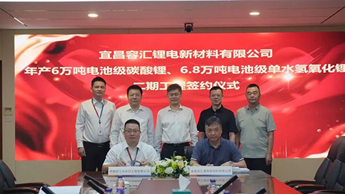 9月17日,宜昌容汇锂电新材料有限公司年产6万吨电池级碳酸锂、6.8万吨电池级单水氢氧化锂二期工程签约仪式在中国海诚长沙公司举行。