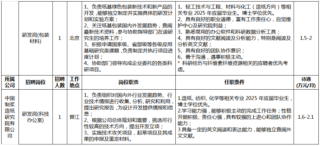 中国制浆造纸研究院有限公司招聘简章
